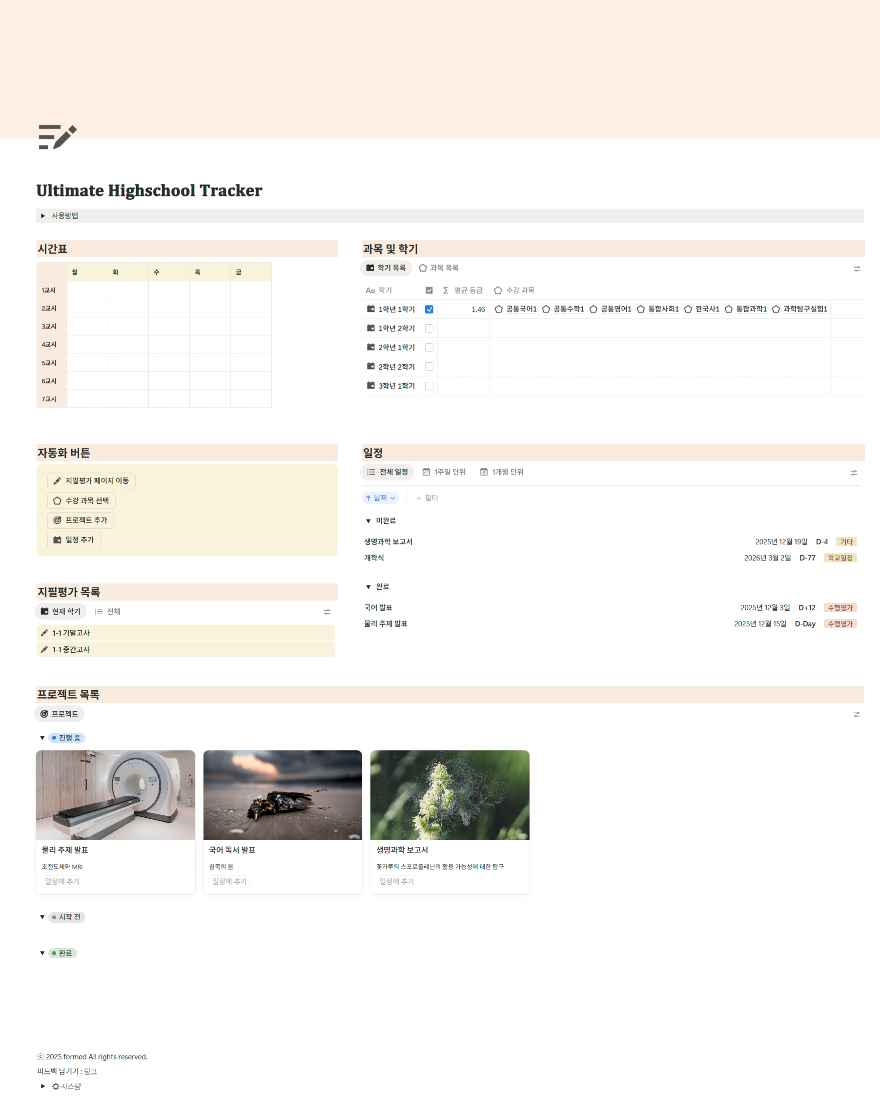 홈/노션/궁극의 학생부종합 트래커크리에이터formed노션궁극의 학생부종합 트래커4,400원총 상품 금액4,400 원구매하기장바구니찜하기구매 안내디지털 상품은 구매 즉시 다운로드 가능합니다결제 후 3일 이내 환불 신청 가능 (이후 자동 구매확정)문의사항은 크리에이터에게 직접 연락해주세요상품 상세정보관련 상품더보기궁극의 학생부종합 트래커4,400원구매하기