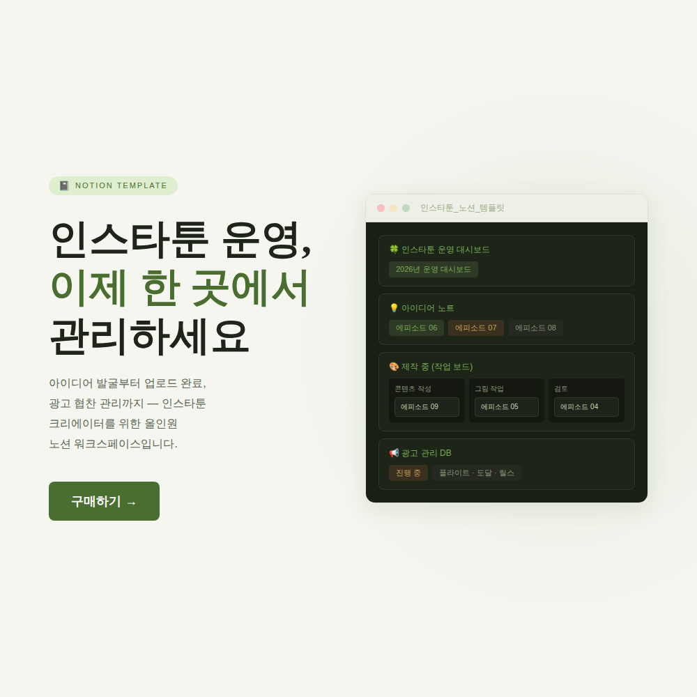 홈/노션/인스타툰 작가를 위한 노션 템플릿크리에이터템플래닛노션인스타툰 작가를 위한 노션 템플릿0원총 상품 금액0 원구매하기장바구니찜하기구매 안내디지털 상품은 구매 즉시 다운로드 가능합니다결제 후 3일 이내 환불 신청 가능 (이후 자동 구매확정)문의사항은 크리에이터에게 직접 연락해주세요상품 상세정보