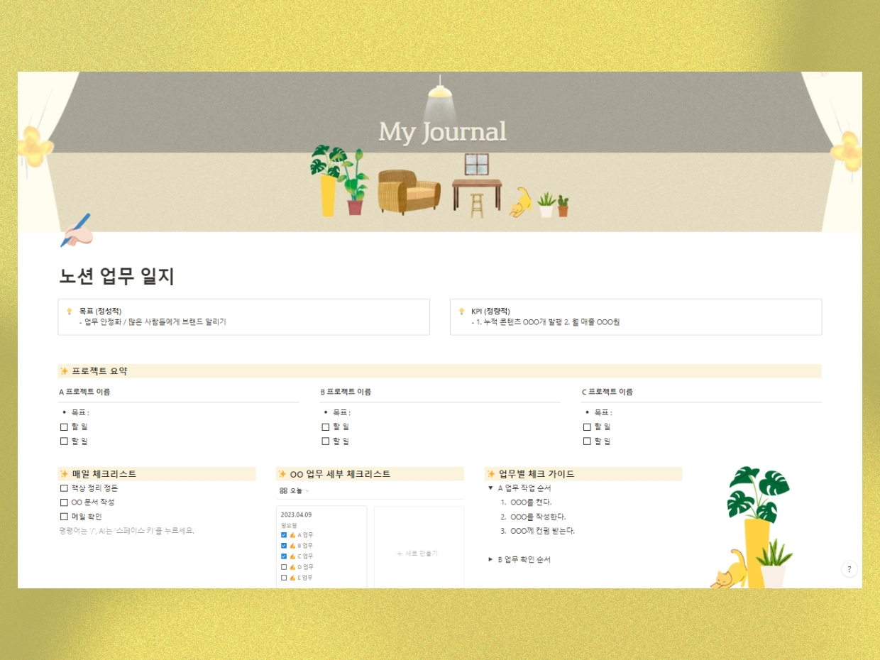 홈/노션/[노션 업무 일지 템플릿 + 업무에 필요한 웹사이트 모음집]크리에이터다빛스튜디오노션[노션 업무 일지 템플릿 + 업무에 필요한 웹사이트 모음집]2,900원총 상품 금액2,900 원구매하기장바구니찜하기구매 안내디지털 상품은 구매 즉시 다운로드 가능합니다결제 후 3일 이내 환불 신청 가능 (이후 자동 구매확정)문의사항은 크리에이터에게 직접 연락해주세요상품 상세정보관련 상품더보기[노션 업무 일지 템플릿 + 업무에 필요한 웹사이트 모음집]2,900원구매하기