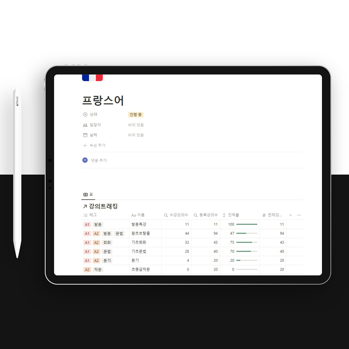 홈/노션/노션 스터디 플래너 : 학습 계획과 진척 현황을 한 눈에 확인!크리에이터MINA노션노션 스터디 플래너 : 학습 계획과 진척 현황을 한 눈에 확인!1,500원총 상품 금액1,500 원구매하기장바구니찜하기구매 안내디지털 상품은 구매 즉시 다운로드 가능합니다결제 후 3일 이내 환불 신청 가능 (이후 자동 구매확정)문의사항은 크리에이터에게 직접 연락해주세요상품 상세정보관련 상품더보기노션 스터디 플래너 : 학습 계획과 진척 현황을 한 눈에 확인!1,500원구매하기