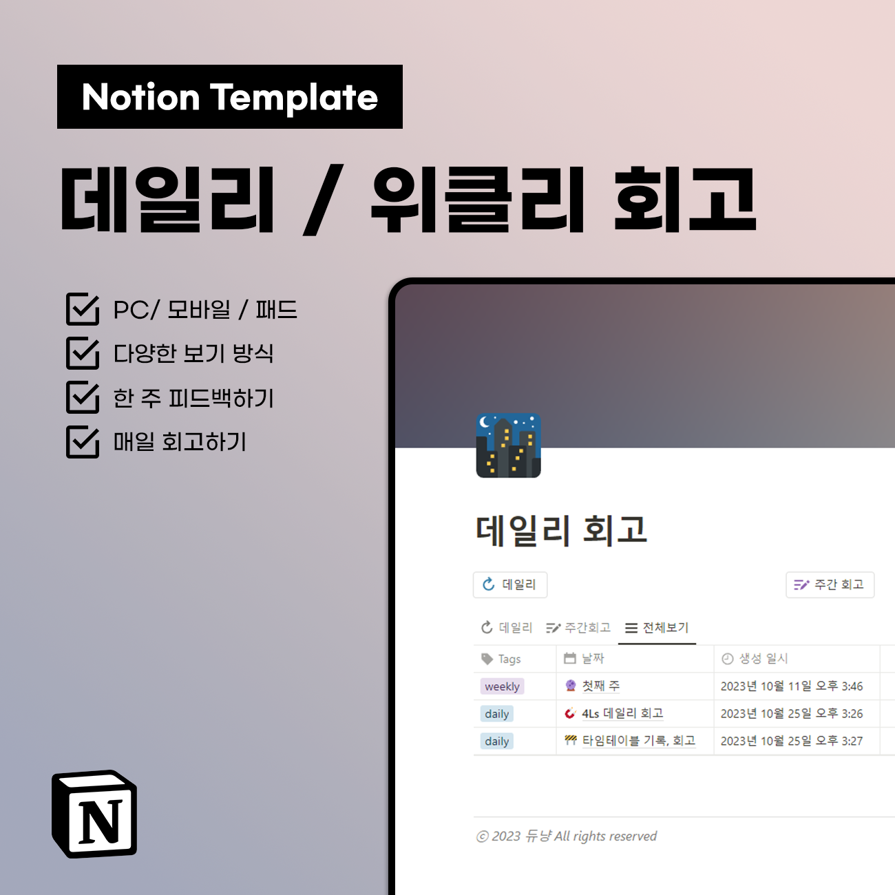 홈/노션/[노션 템플릿] 데일리 & 위클리 회고, 피드백✨크리에이터듀냥노션[노션 템플릿] 데일리 & 위클리 회고, 피드백✨2,500원총 상품 금액2,500 원구매하기장바구니찜하기구매 안내디지털 상품은 구매 즉시 다운로드 가능합니다결제 후 3일 이내 환불 신청 가능 (이후 자동 구매확정)문의사항은 크리에이터에게 직접 연락해주세요상품 상세정보관련 상품더보기[노션 템플릿] 데일리 & 위클리 회고, 피드백✨2,500원구매하기