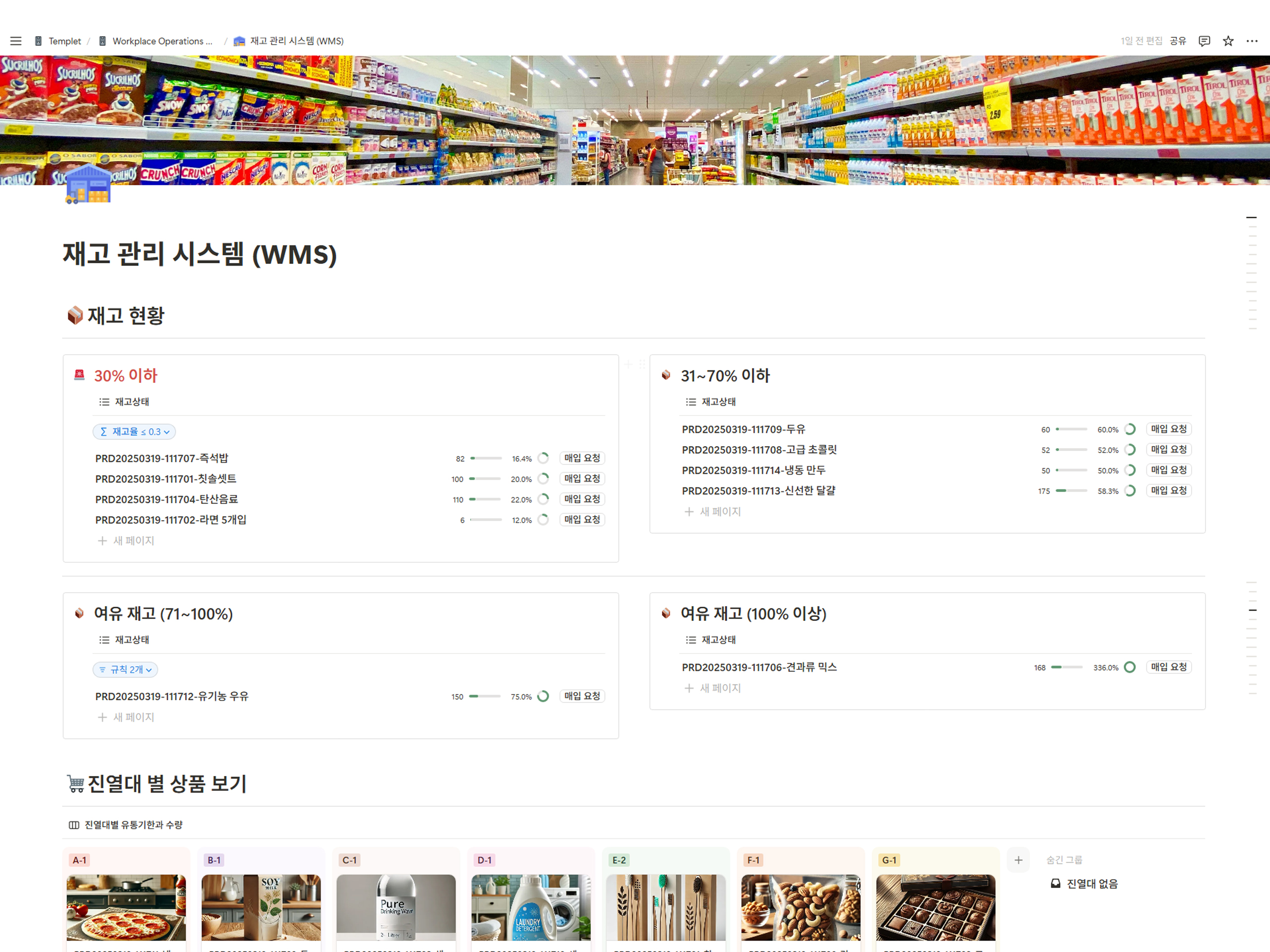 홈/노션/재고관리 시스템 (WMS)크리에이터imago노션재고관리 시스템 (WMS)110,000원총 상품 금액110,000 원구매하기장바구니찜하기구매 안내디지털 상품은 구매 즉시 다운로드 가능합니다결제 후 3일 이내 환불 신청 가능 (이후 자동 구매확정)문의사항은 크리에이터에게 직접 연락해주세요상품 상세정보관련 상품더보기재고관리 시스템 (WMS)110,000원구매하기